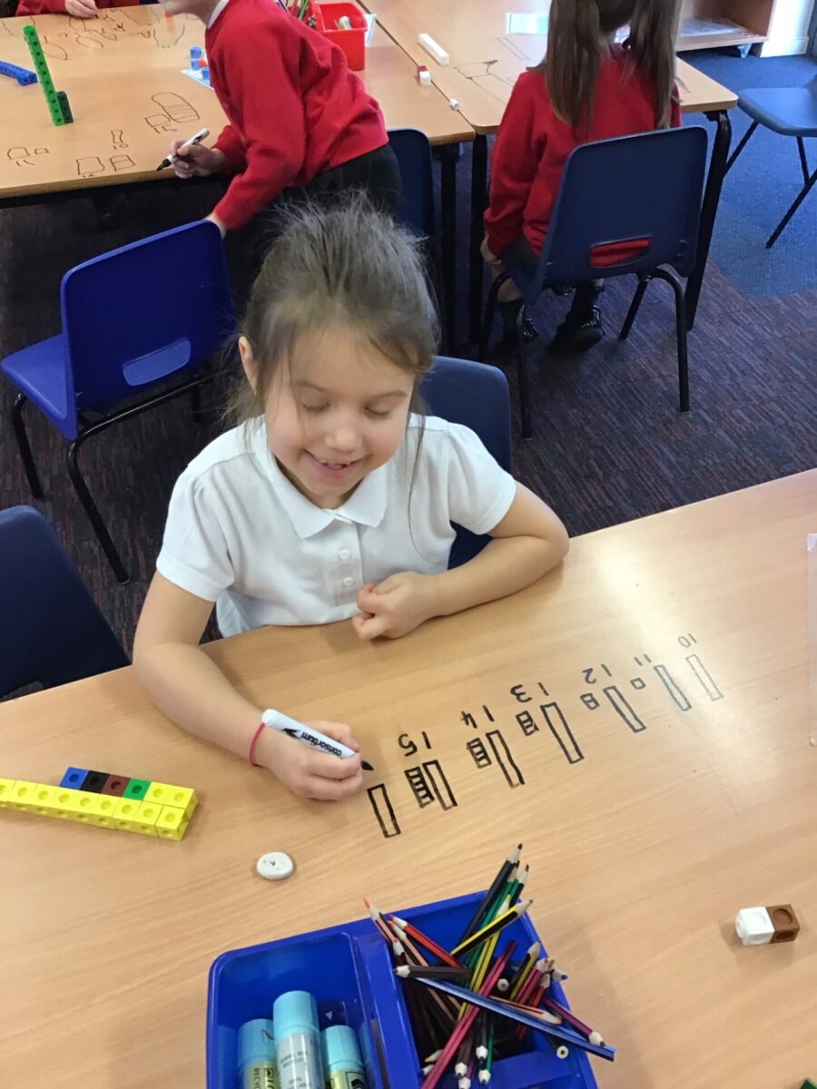 In Maths we have been learning about numbers up to 20 and getting to know them really well. We have done lots of counting forwards and backwards and starting from a random number like 12. We also looked at putting numbers in order and comparing them using the symbols < and >.