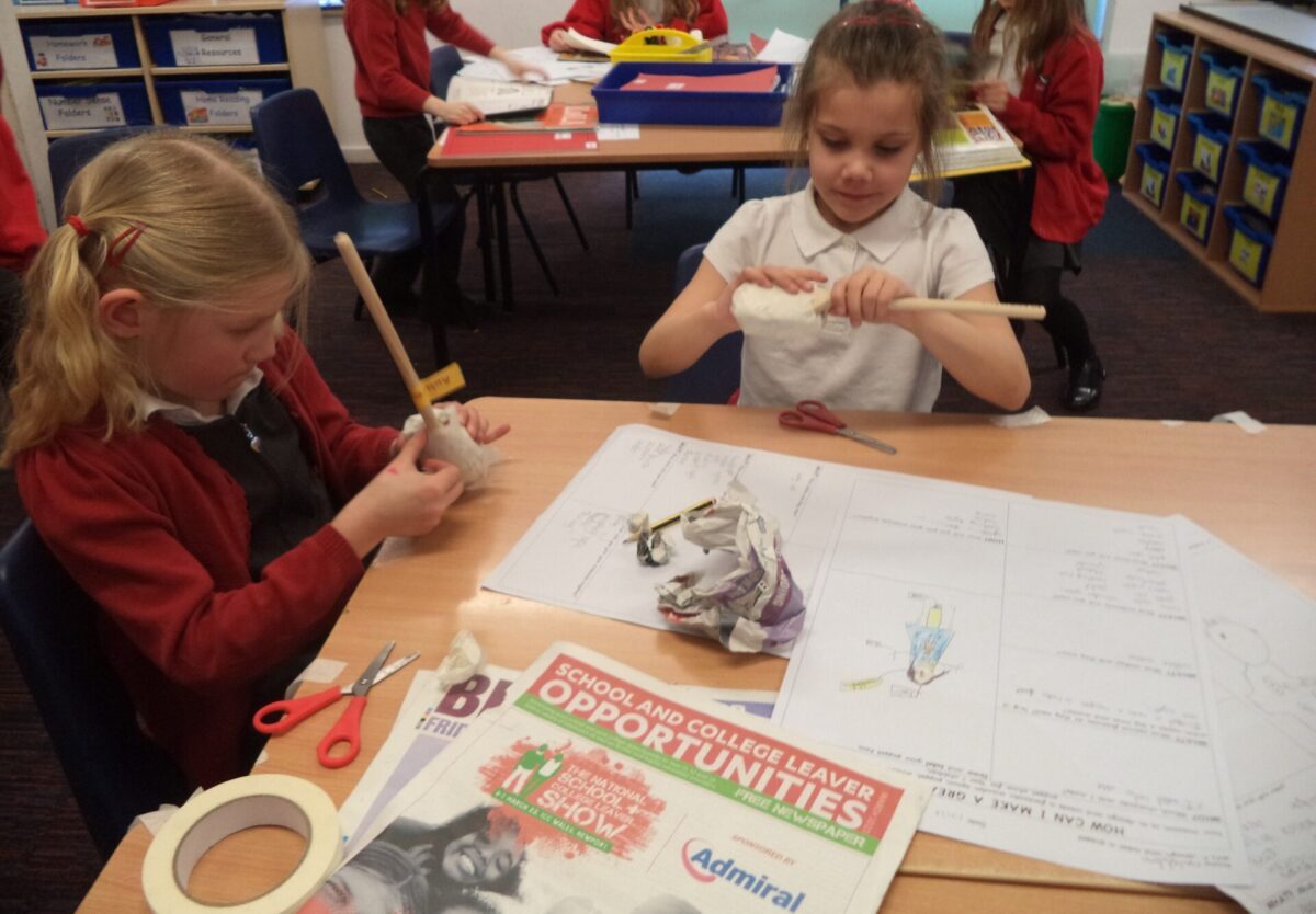 WOW! Year 2 have become a truly fantastic set of designers this week as we have begun our Puppet making process. Mrs Clulow and Mrs Bentley were astounded by our abilities to sew a running stitch! We have thought carefully about the materials we will require and begun moulding our newspaper to create a base for our heads. We tightly wrapped this in masking tape, which some of us found very tricky to use!