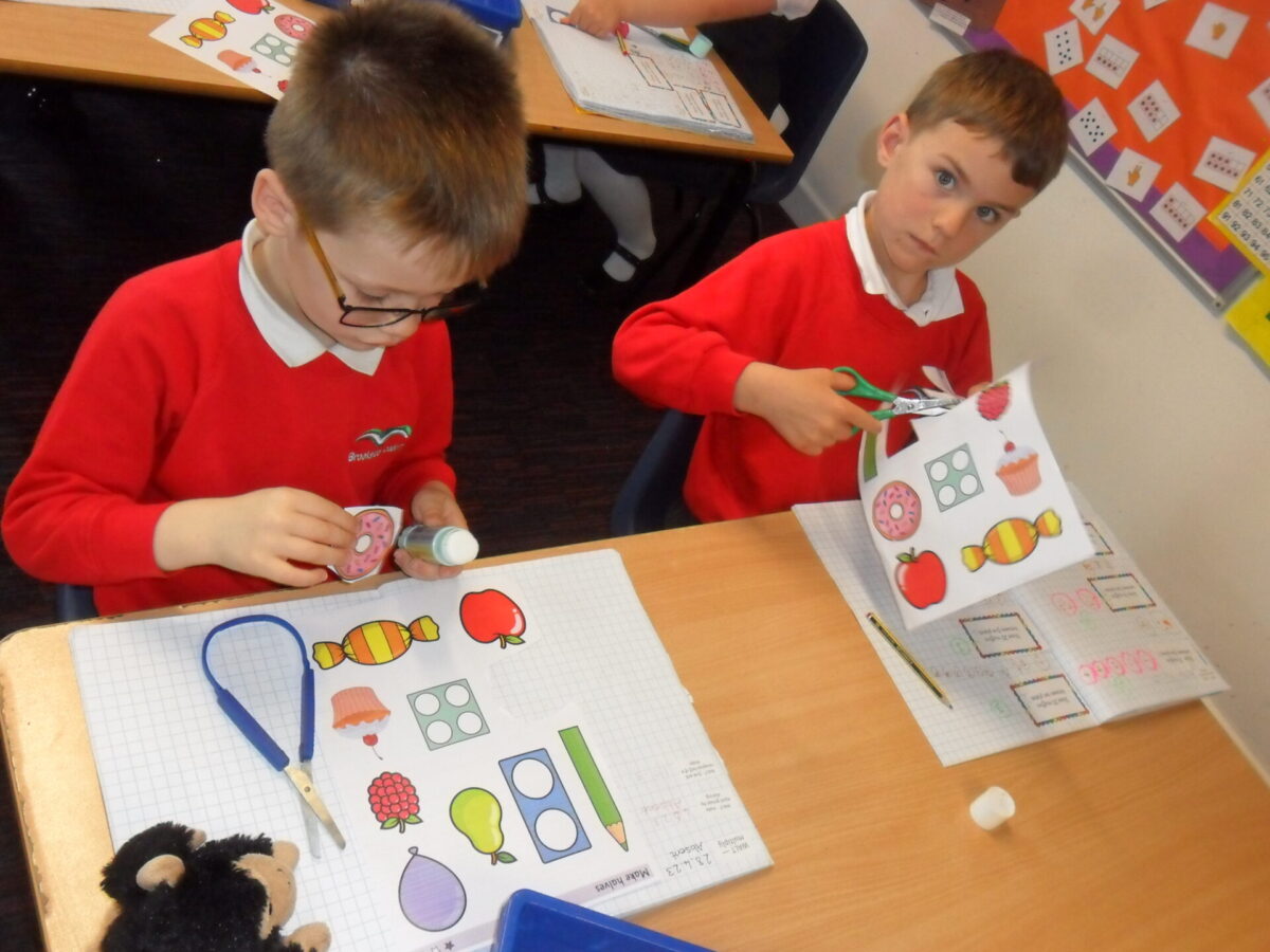Splitting the dot into quarters was perfectly timed as in Maths we have been learning about fractions. We began by splitting shapes in half and then moved on to splitting amounts in half, both of these were quite simple. When we moved on to quarters it got a little trickier but we still did well. We had to cut shapes into 4 equal pieces and then split amounts of objects into 4 as well.