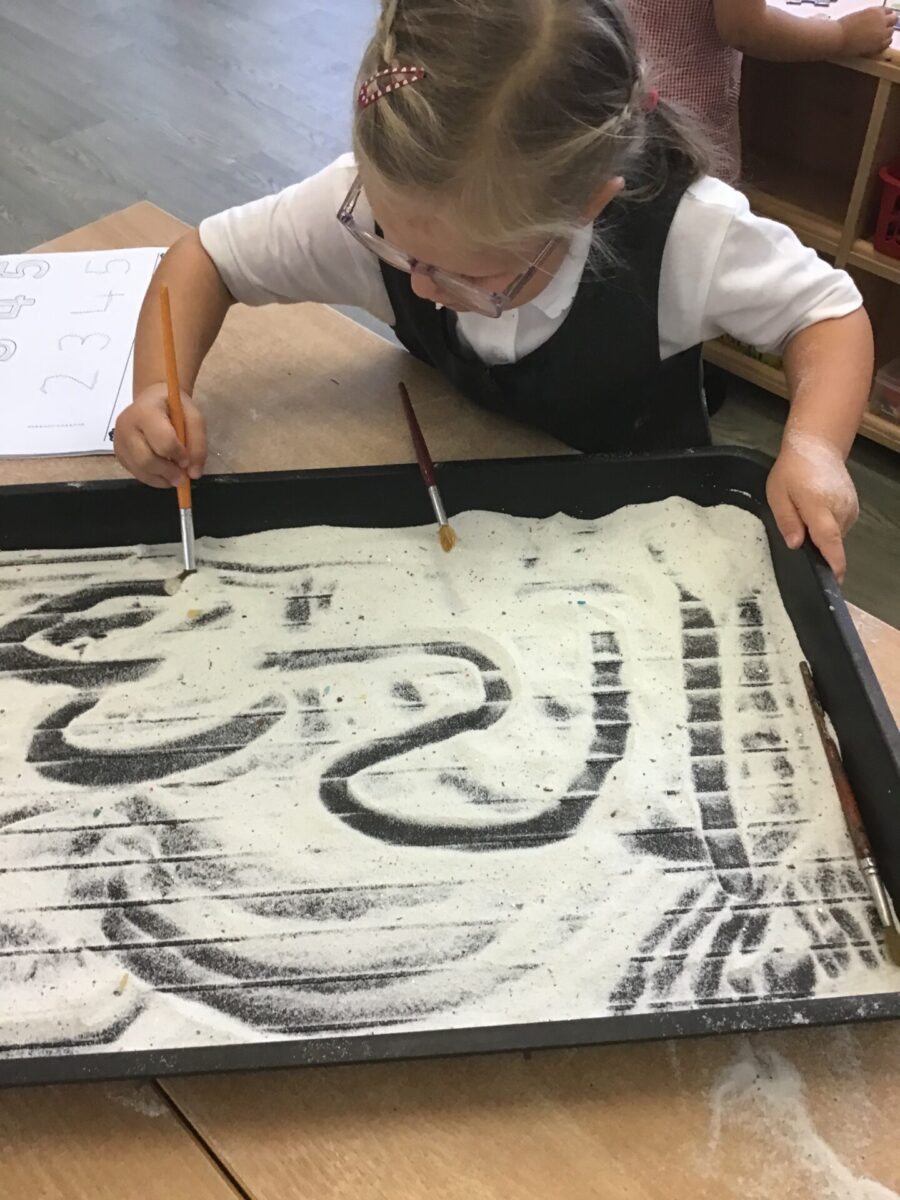 This week the children have been practicing the sounds ‘s’, ‘a’, ‘t,’ and ‘p’ in phonics and have used magnetic letters to form some words using these sounds and developing their letter formation. In maths the children have been learning all about the numbers 1, 2 and 3 and have been practising their number formation.