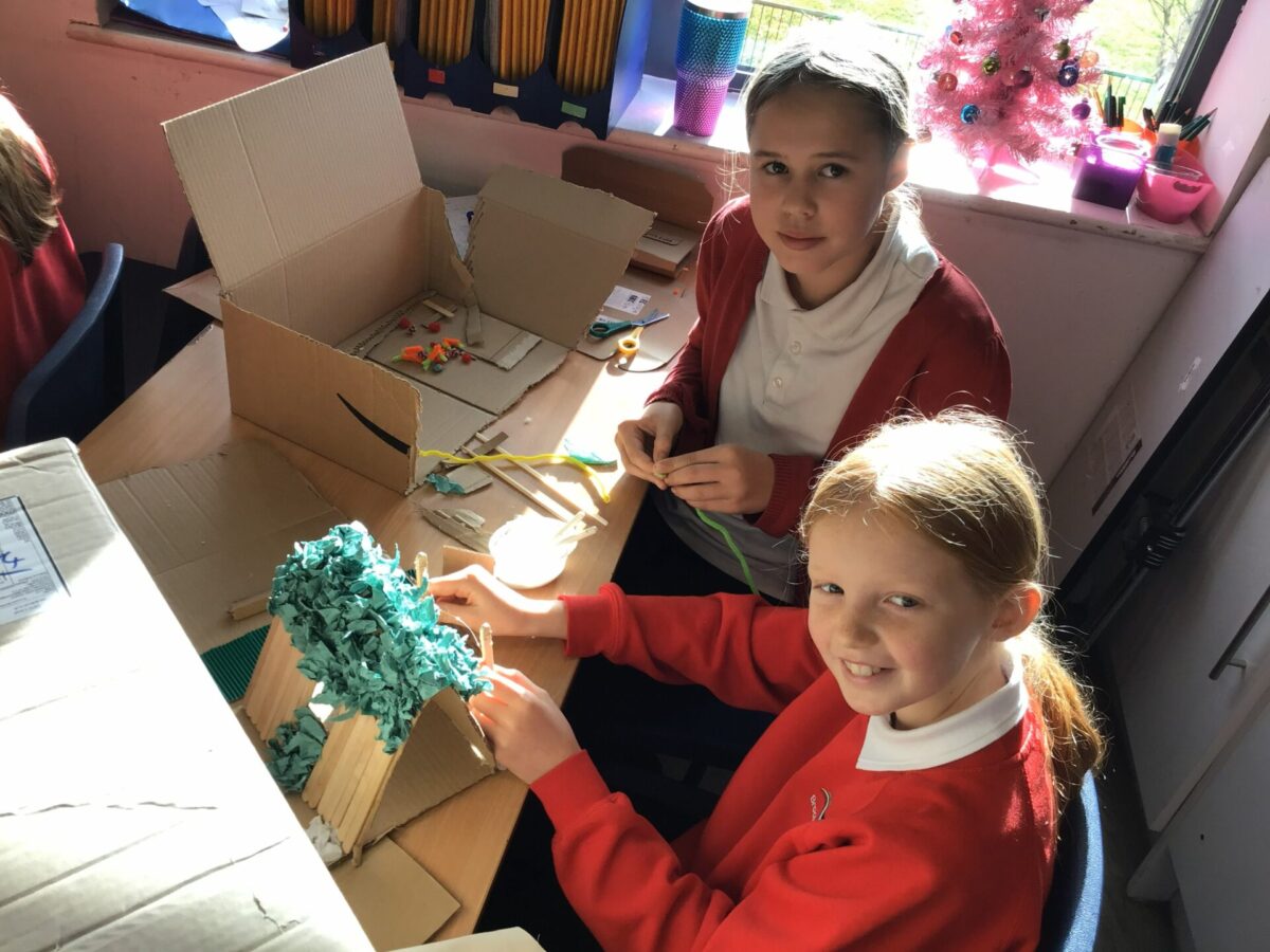 The children created a design and then worked hard to construct their design as best as possible, using small hand saws, glue-guns, sandpaper and a sharp eye for detail. After completion, the children evaluated their finished creation and discussed whether they had made any modifications and how they might improve it next time.