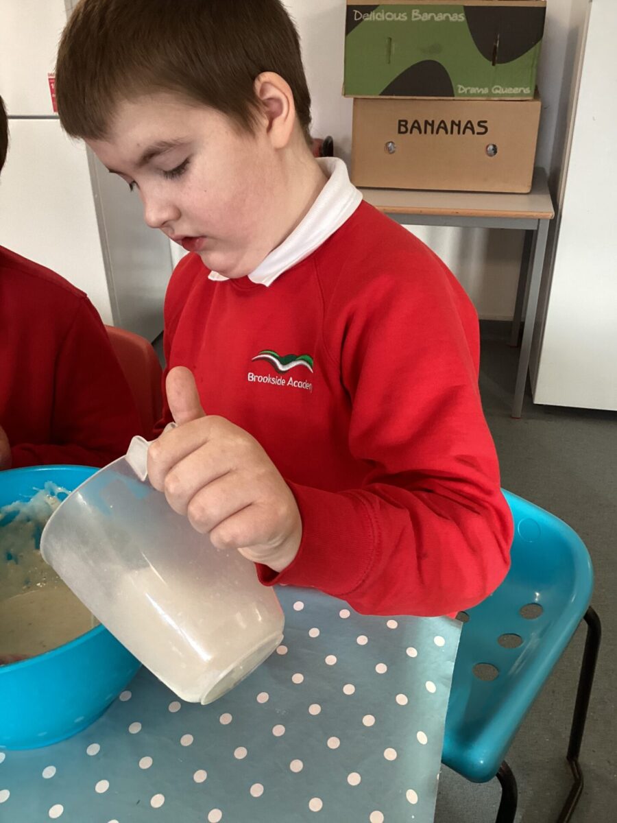 In Jays class we have been trying lots of different types of foods. We have been cooking banana muffins, pizzas and pancakes. We choose the toppings that we wanted to put onto our pancakes. We also found out about Chinese New Year and used our cutting and sticking skills to make some pictures of dragons.