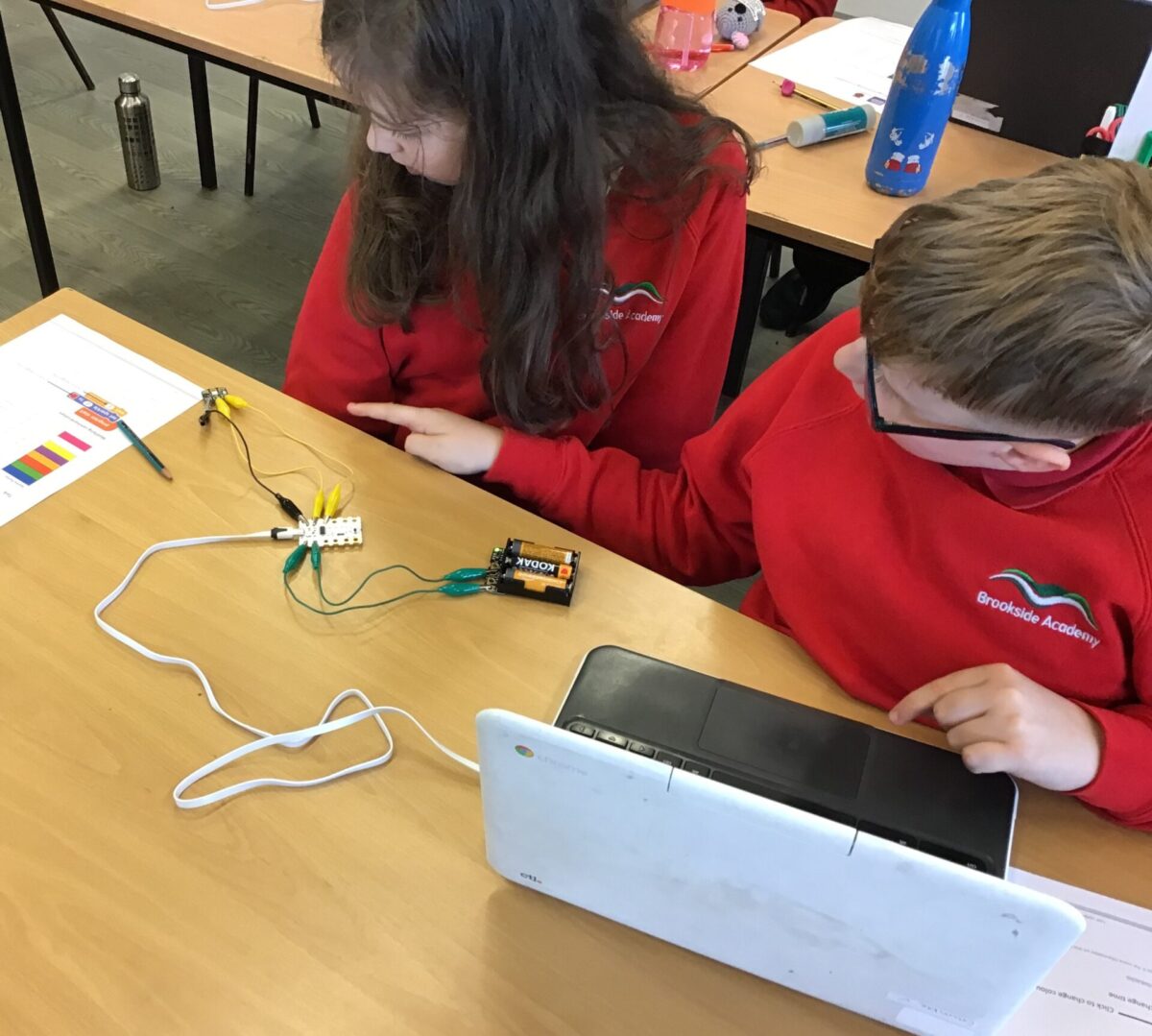 During our computing lessons this term, we will be using Crumbles. These are electronic controllers that connects to a computer using a USB cable. You can attach components like LEDs, buttons, and motors to the Crumble using crocodile leads, and you can program your Crumble using software. So far, we have programmed our crumbles to light up LEDs and to move a motor. It has been very fun to create different algorithms and to see what we can do!