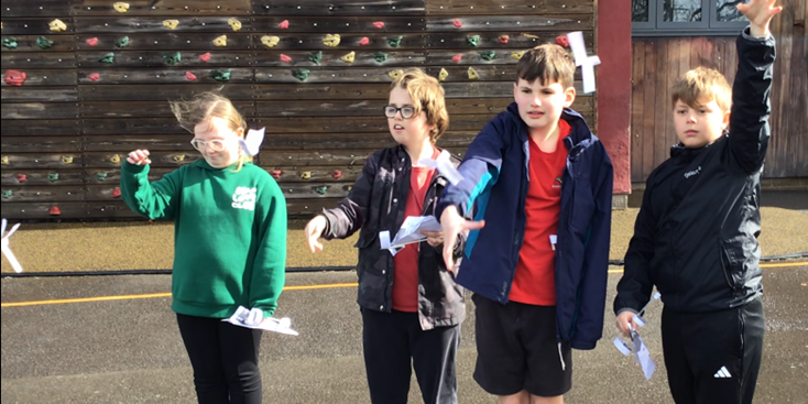 In science we have learned about classifying animals and organisms and we also had British Science week in the middle of the term which involved making paper air crafts. We chose the windiest day to get outside and see if they could indeed fly. See the pictures and decide for yourself!