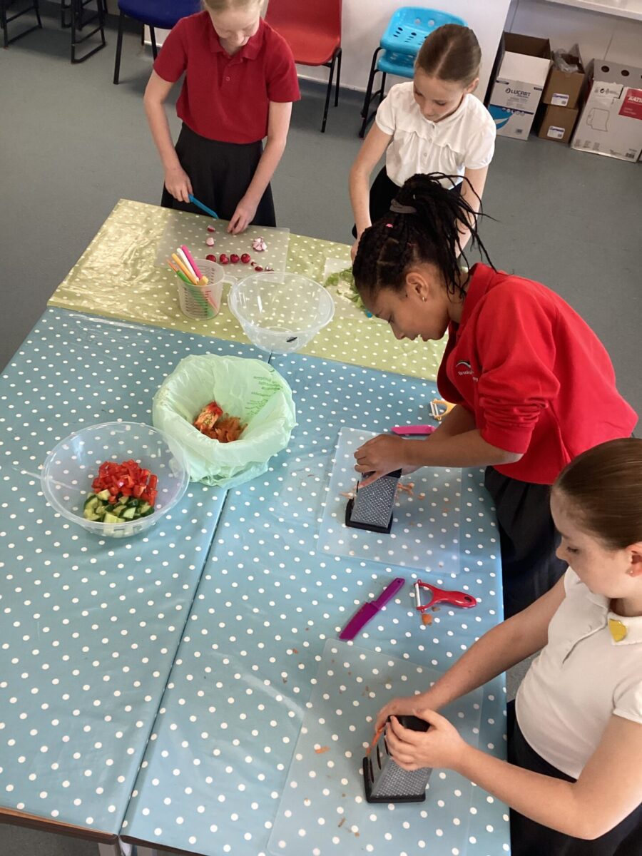 Year 5 had a fantastic day developing their food technology skills as they learned how to prepare their very own fresh salad.