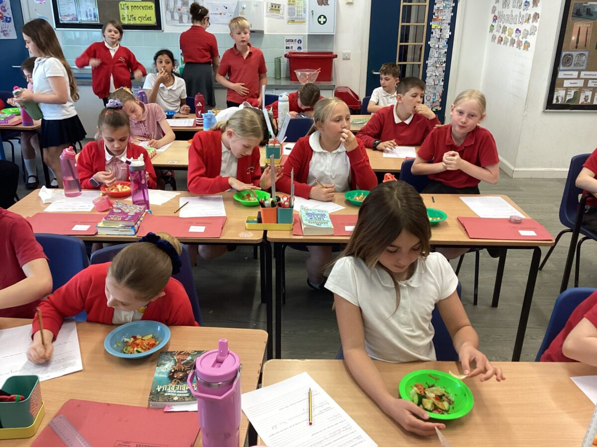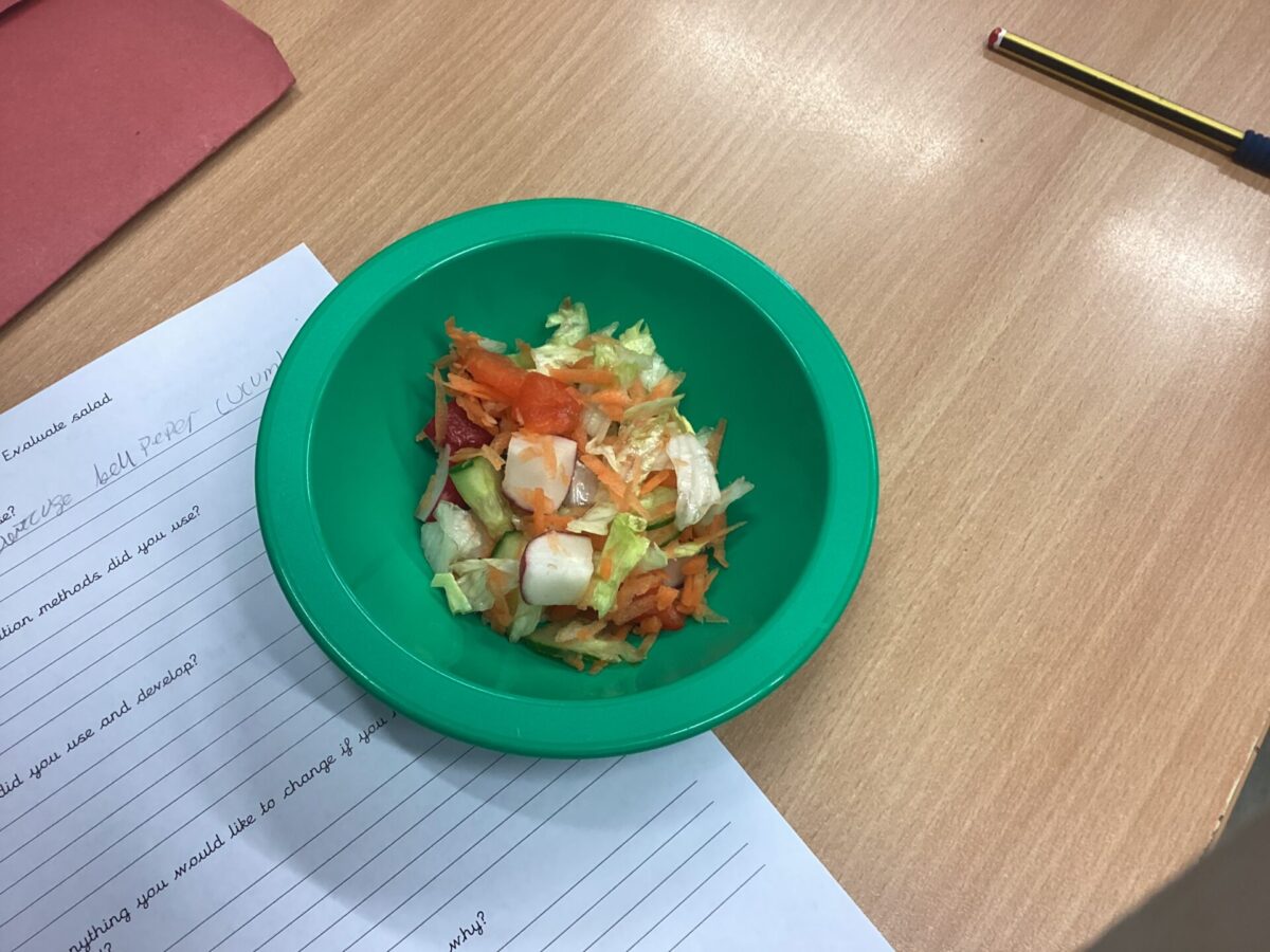 At the end of the day, Year 5 enjoyed a taste‑testing session, trying their salads and discussing the flavours, textures, and presentation. They then completed an evaluation, reflecting on what went well and what they might improve next time. The children showed fantastic teamwork, creativity, and enthusiasm.