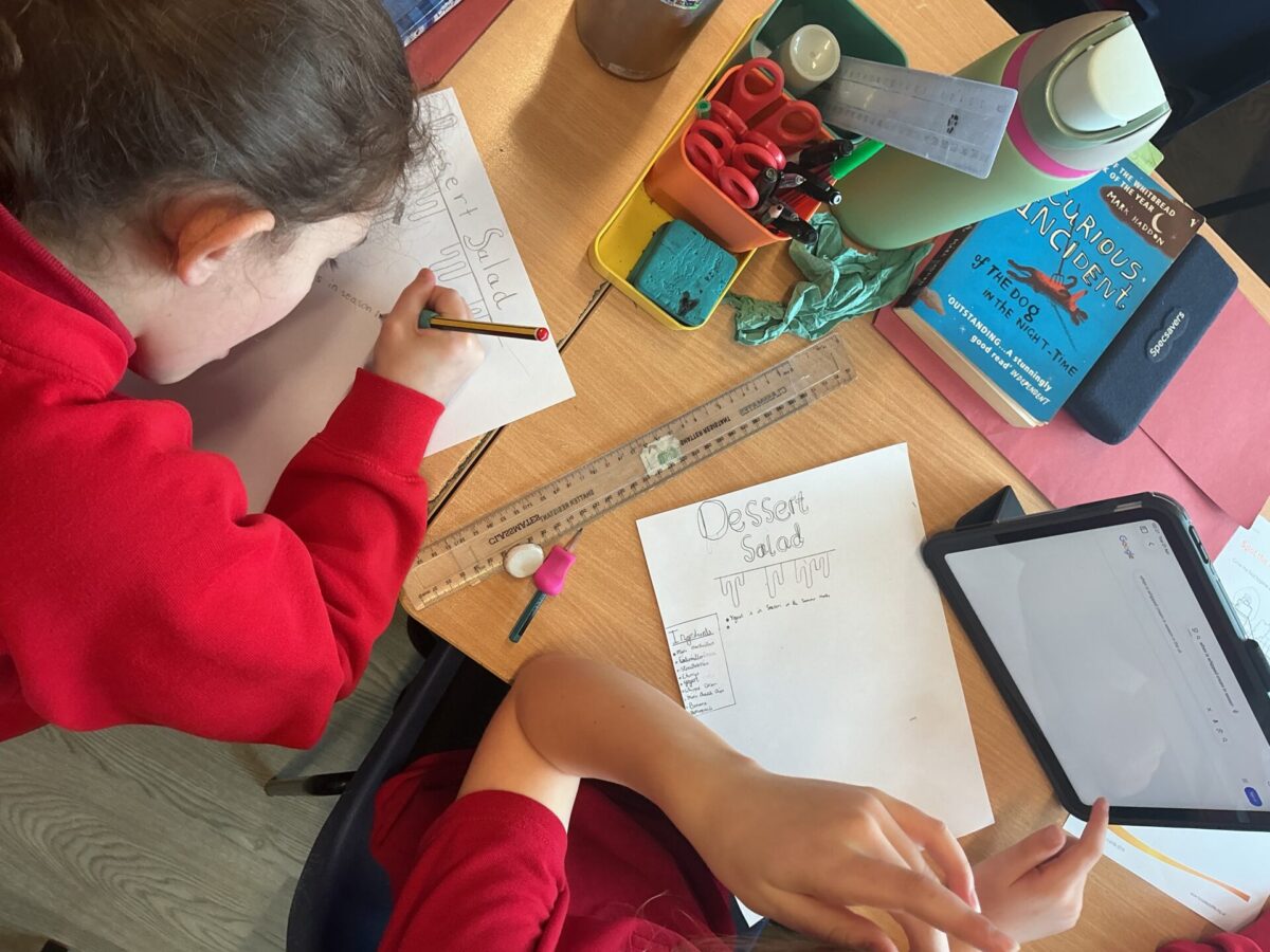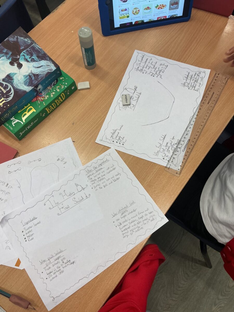 They explored different types of salads from around the world, creating informative posters, as well as designing their own step‑by‑step salad recipes, thinking carefully about ingredients, equipment, and method.